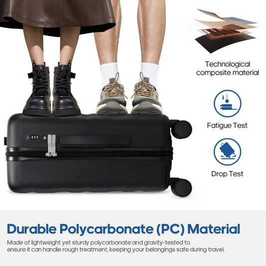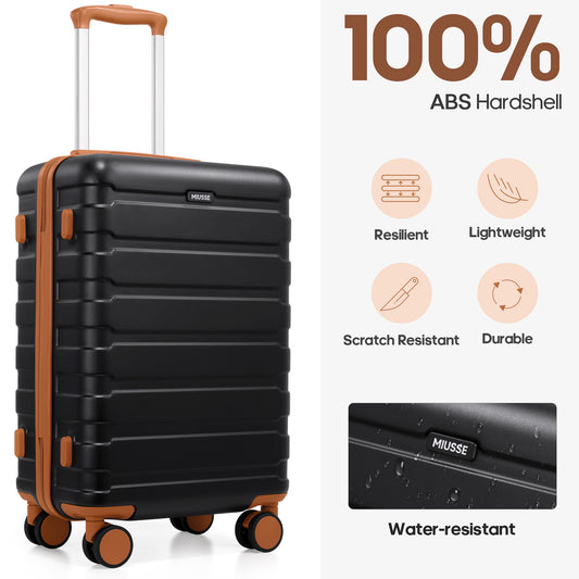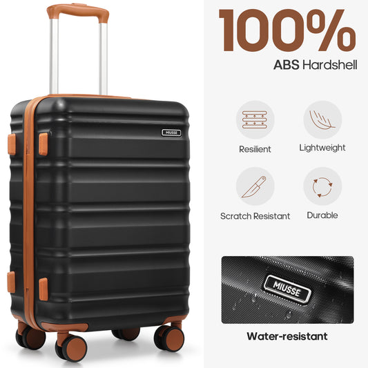 MIUSSE 20 inch Carry On Luggage Airline Approved 100% PC Lightweight Hard Shell Suitcase with Spinner Wheels and TSA Lock, Black
