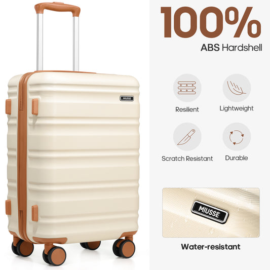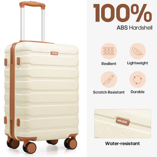 MIUSSE 20 inch Carry On Luggage Airline Approved 100% PC Lightweight Hard Shell Suitcase with Spinner Wheels and TSA Lock, White