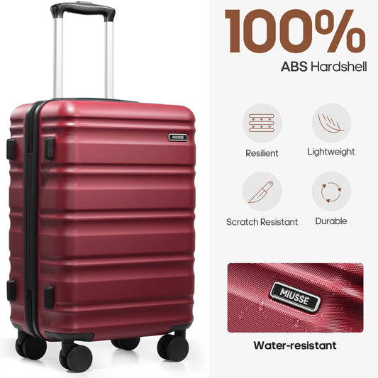 MIUSSE Carry On Luggae for Airplane, 20 Inch Carry On Suitcase with Spinner Wheels and TSA Lock, Hard Shell Luggage Sets 3 Piece with Travel Backpack
