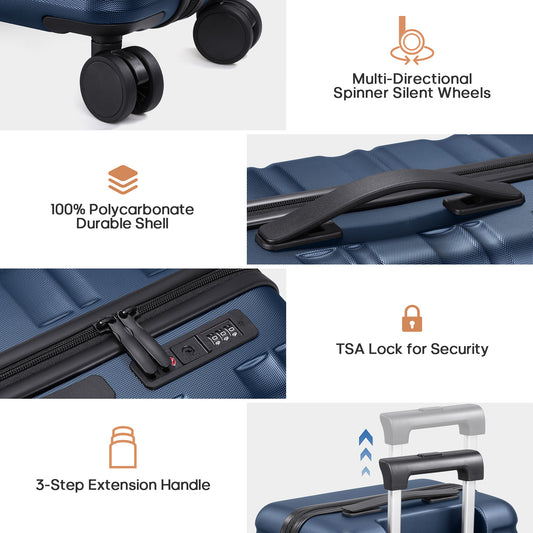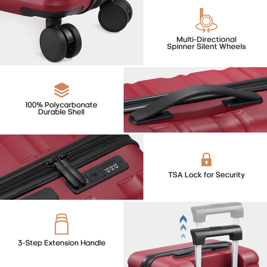 MIUSSE Carry on Luggage Set 3 Piece Hard Shell Luggage Sets with Spinner Wheels TSA Lock Carry on with Backpack Set