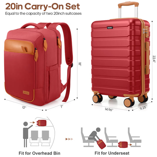 MIUSSE Carry On Luggage Set, Hard Shell Luggage Sets 3 Piece, Luggage with Backpack Set, 20 Inch Carry On Luggage Set with Backpack for Men Women