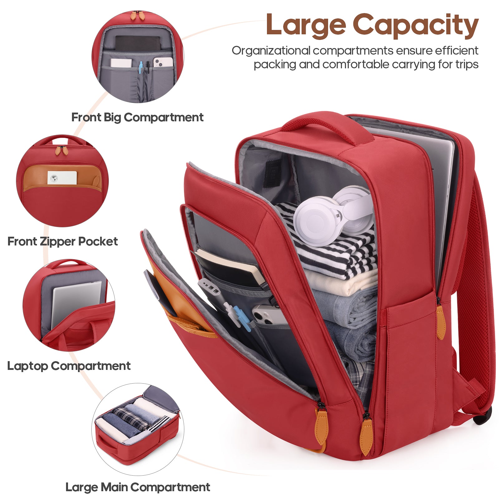 Includes an ergonomic handle with 3 adjustable levels and TPU handles offer a secure grip. Back sleeve of travel backpack can attaches to the luggage handle.