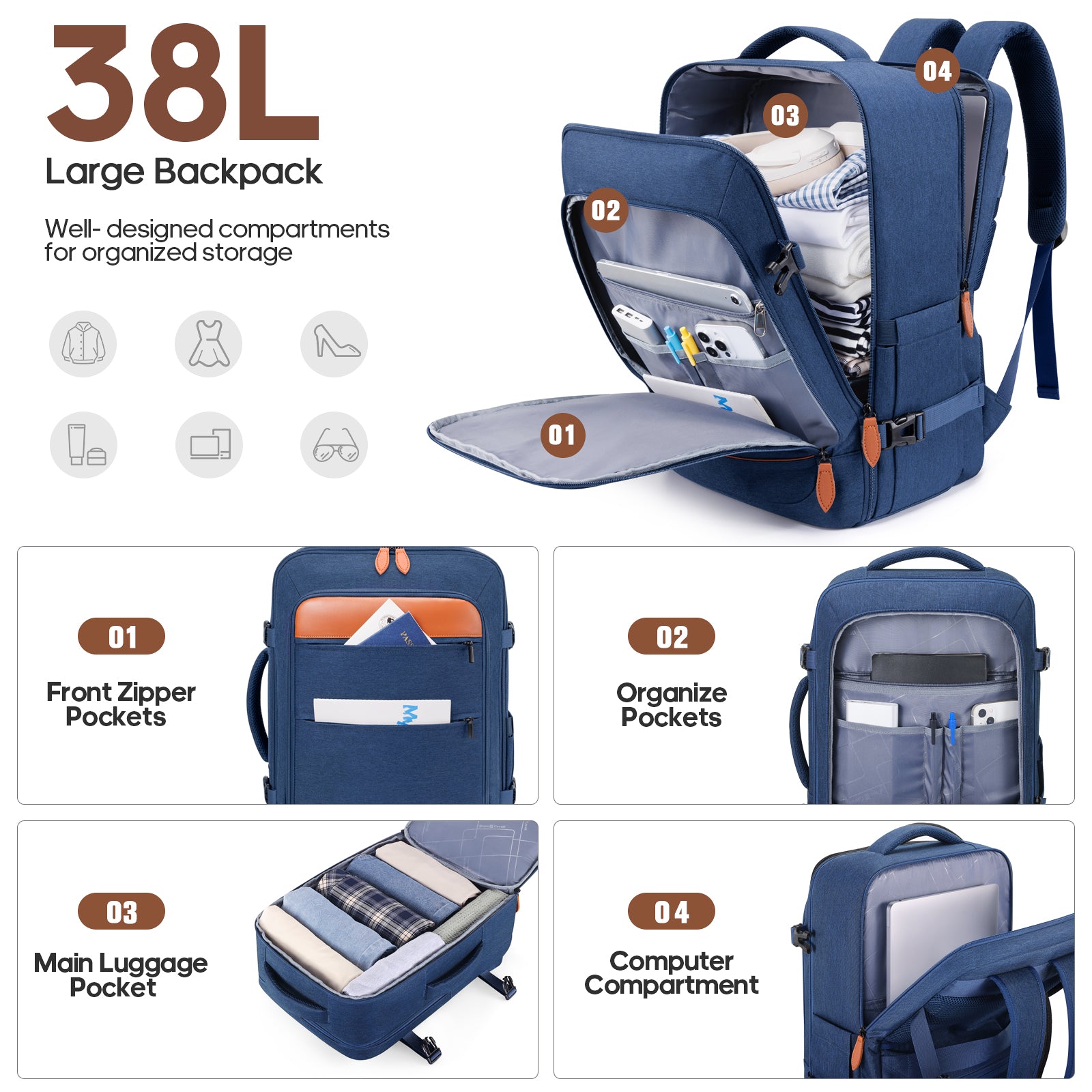 1. Travel laptop backpack with a separate laptop compartment holds laptops from 13 inch, up to 17.3 inch.
