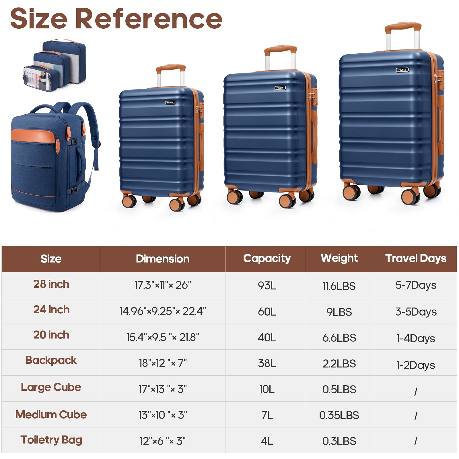 MIUSSE Hard Shell Luggage Sets 7 Pieces, 28/24/20 inch Suitcase Sets with Spinner Wheels & TSA Lock, Hard Case Luggage Set with Travel Backpack and Packing Cubes