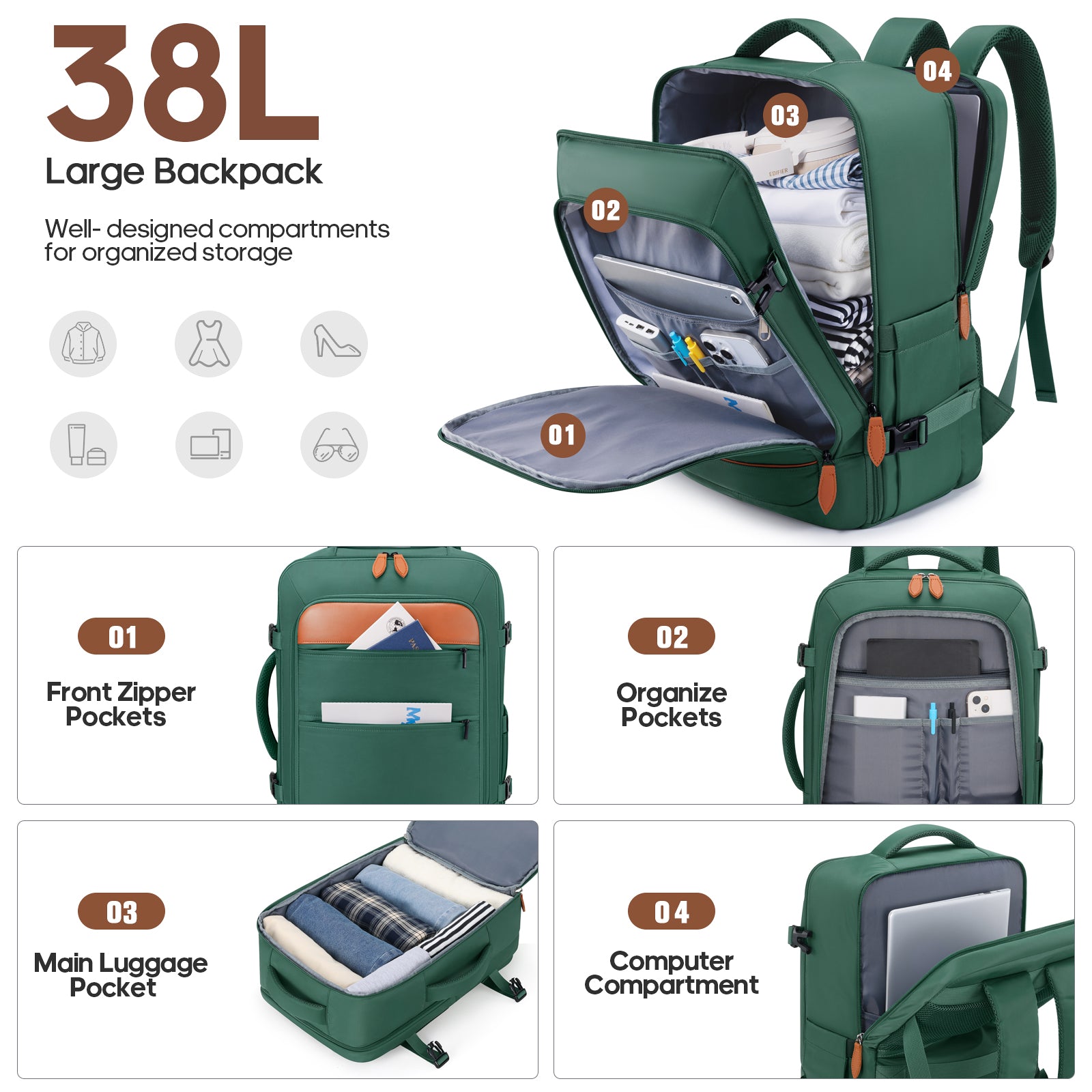 Ample storage and multiple pockets with our travel backpack: