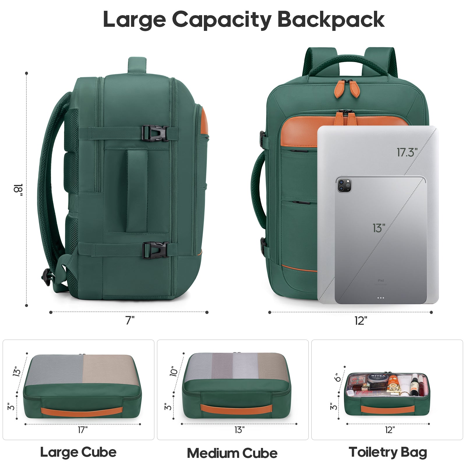 1. Travel laptop backpack with a separate laptop compartment holds laptops from 13 inch, up to 17.3 inch.
